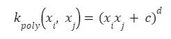 다항식 커널 (Polynomial Kernel)은 입력변수들의 가능한 모든 조합, 즉 벡터의 내적을 지정된 차수까지 계산하는 커널이다. 다항식 커널의 일반적인 모형은 다음과 같다.